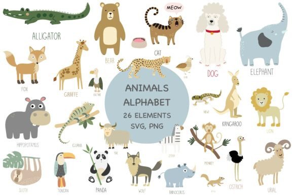 A complete animal alphabet SVG set, combining education and decoration for baby rooms. Great for playful yet meaningful wall art.