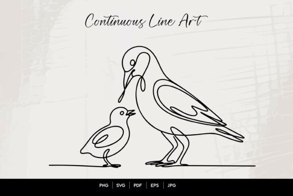 A minimal line art design of a mother bird with her baby, perfect for modern nursery decor. Subtle and elegant, suitable for any baby room theme.